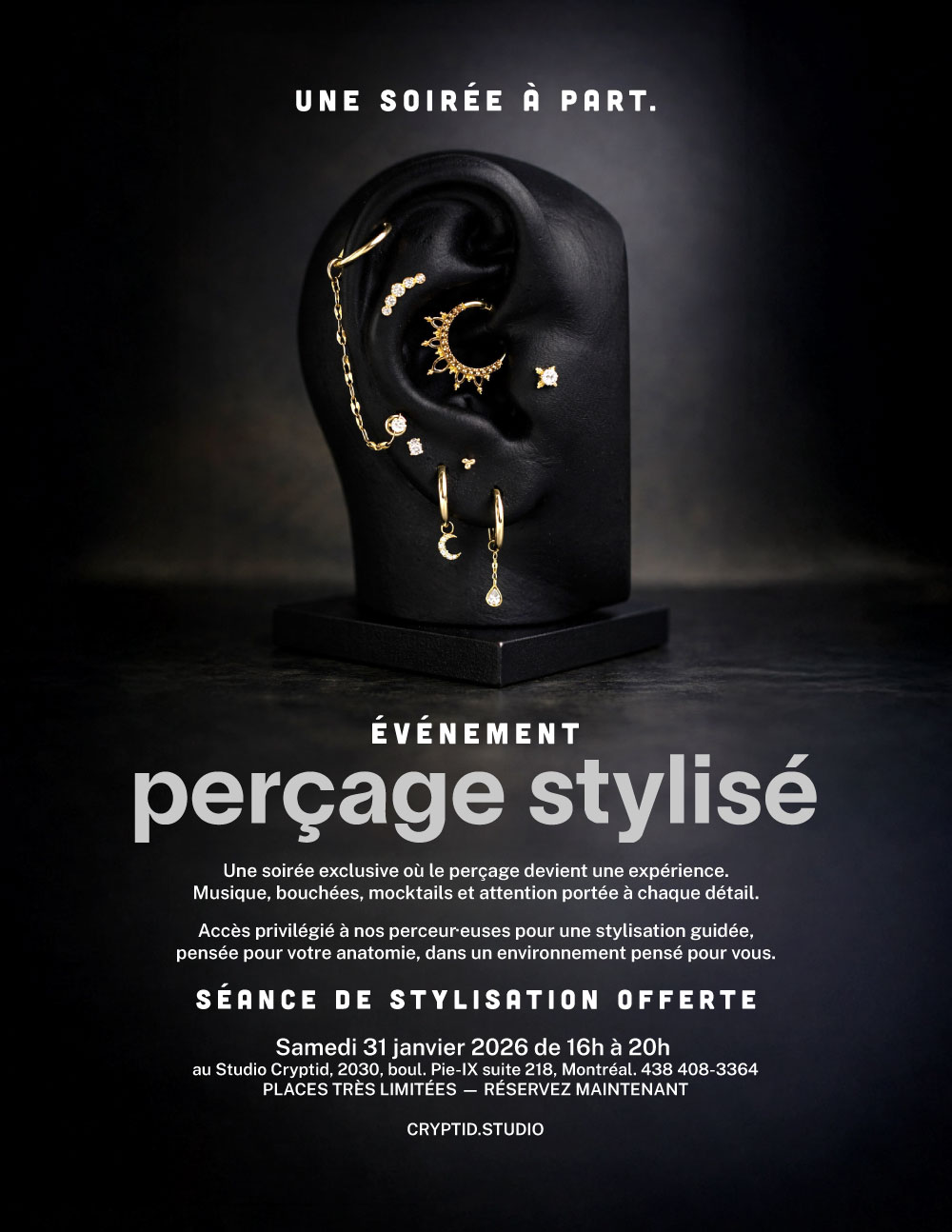 Cryptid Studio est un studio de perçage et de tatouage situé à Montréal, sur le boulevard Pie-IX. Nous offrons des services de perçage réalisés avec rigueur, des bijoux de qualité et une approche personnalisée dans un environnement professionnel, propre et accueillant.